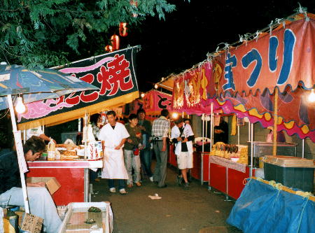 わたあめ お好み焼き 焼きそば イカ焼き 大阪焼き りんご飴 バナナチョコ 焼き鳥 たこ焼き ソース煎餅 etc.