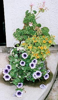 追記: 紫の花はペチュニアと判明