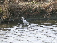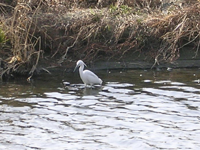 多摩川河川で懸命に餌を探している白鷺
