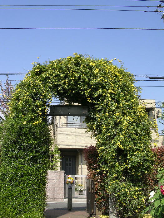 このアーチを作ってる花は<カロライナジャスミン>といいますが