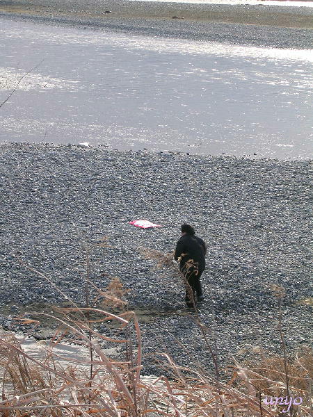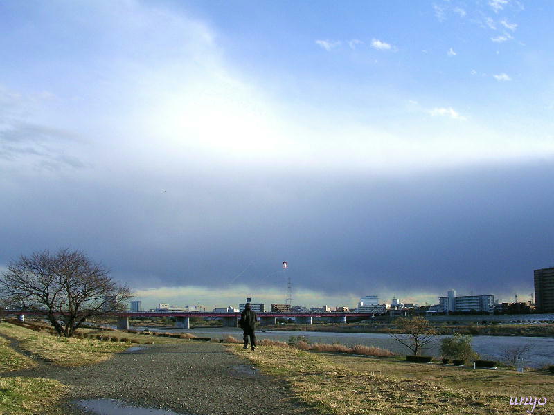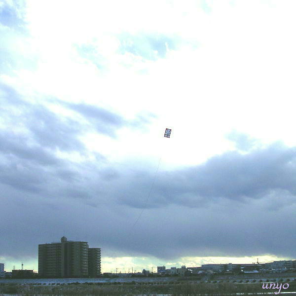 今日 すずめさんから頂いた『凧』を揚げに オットちゃんを引き連れて河原へ行ってきました