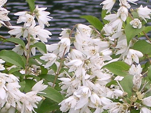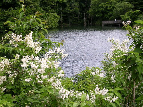 【シロバナヤエウツギ】が長池公園の姿池のすぐ傍らにあるって・・・