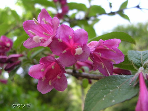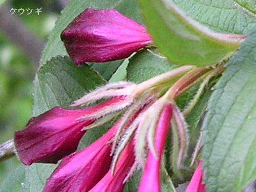 名前のケウツギ(毛空木)の由来は、葉や花に毛が密生してることから。