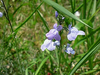 花の色は鮮やかなルリ色だが、葉の付け根に隠れるように咲くのでよけい目立たない。