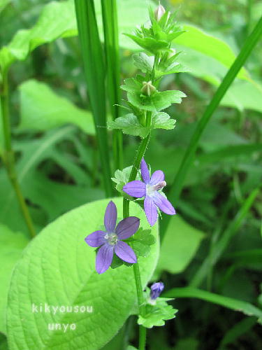 花が葉のつけ根に1〜3個ずつ段々になってつくことから、ダンダンギキョウとも呼ばれる。