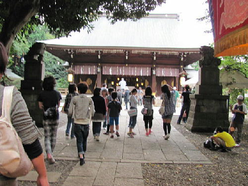 うっそうと茂った鎮守の森の中をまっすぐに伸びる参道