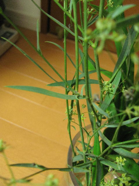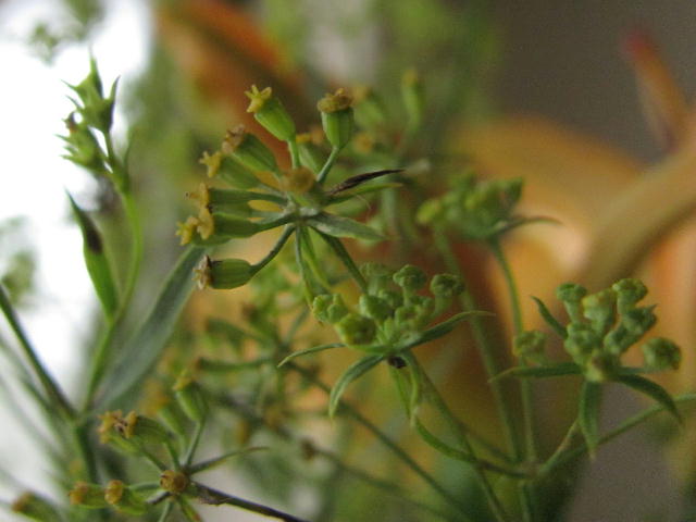 小形の複散形花序に黄色の小さな花をつける。